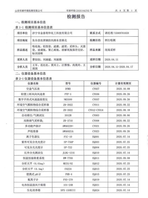 162-济宁市金泰利华化工科技有限公司地下水、废水、废气、噪声检测报告(1)